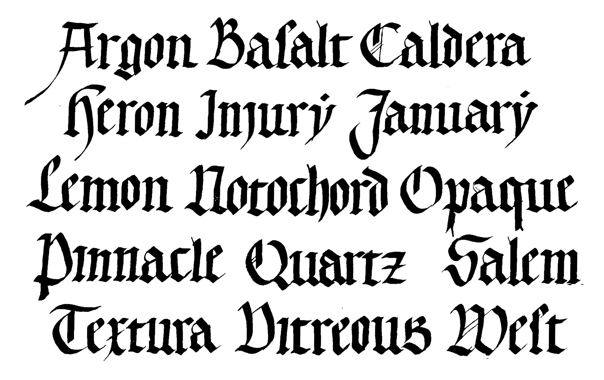 (embedded document, scroll to read) Analysis of Beinecke MS 710. Paleographic analysis of a selected portion of calligraphic manuscript, reconstruction of ductus / pen angle / model alphabet, and a sample of my own interpretation of the script.